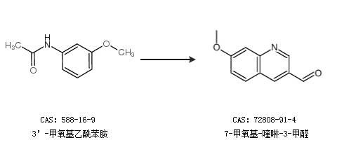 2.通过3’-甲氧基乙酰苯胺合成7-甲氧基-喹啉-3-甲醛