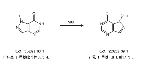 1.通过7-羟基-1-甲基吡唑并[4,3-d]嘧啶合成7-氯-1-甲基-1H-吡唑[4,3-D]嘧啶,收率约98%;