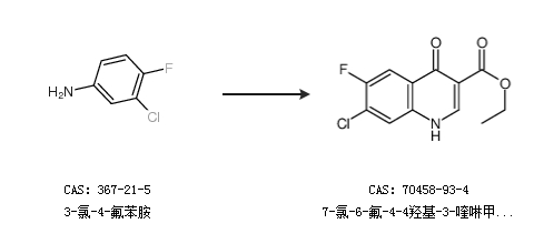 英文别名 7-chloro-3-ethoxycarbonyl-6-fluoro-4-hydroxyquinoline;7-chloro-6-fluoro-4-hydroxyquinoline-3-carboxylic acid;7-chloro-6-fluoro-4-hydroxyquinoline-3-carboxylic acid ethyl ester;Ethyl 7-chloro-6-fluoro-4-hydroxyquinoline-3-carboxylate;7-Chloro-6-fluoro-4-hydroxy-3-quinolinecarboxylic acid ethyl ester;
