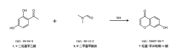 2.通过2,4-二羟基苯乙酮和N,N-二甲基甲酰胺合成7-羟基-苯并吡喃-4-酮,收率约56%;