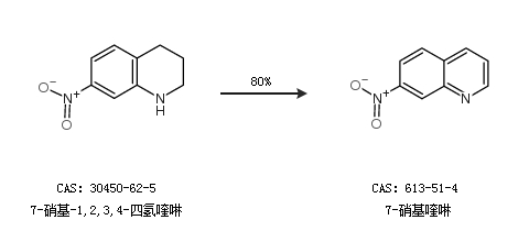 1.通过7-硝基-1,2,3,4-四氢喹啉合成7-硝基喹啉,收率约80%;