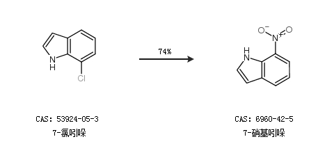 2.通过7-氯吲哚合成7-硝基吲哚,收率约74%;