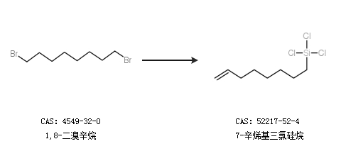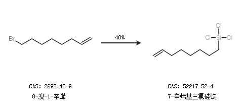 1.通过8-溴-1-辛烯合成7-辛烯基三氯硅烷,收率约40%;
