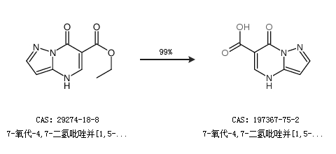 1.通过7-氧代-4,7-二氢吡唑并[1,5-a]嘧啶-6-羧酸乙酯合成7-氧代-4,7-二氢吡唑并[1,5-a]嘧啶-6-羧酸,收率约99%;
