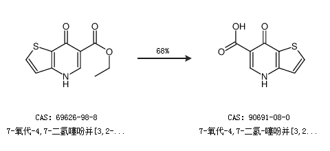 1.通过7-氧代-4,7-二氢噻吩并[3,2-b]吡啶-6-羧酸乙酯合成7-氧代-4,7-二氢-噻吩并[3,2-B]吡啶-6-羧酸,收率约68%;