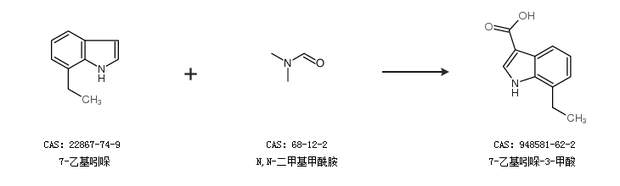 1.通过7-乙基吲哚和N,N-二甲基甲酰胺合成7-乙基吲哚-3-甲酸