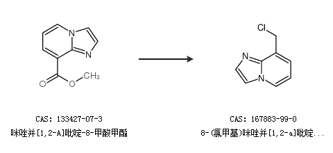2.通过咪唑并[1,2-A]吡啶-8-甲酸甲酯合成8-(氯甲基)咪唑并[1,2-a]吡啶盐酸盐
