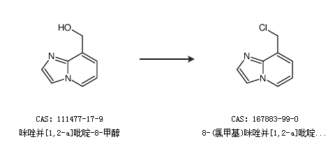 1.通过咪唑并[1,2-a]吡啶-8-甲醇合成8-(氯甲基)咪唑并[1,2-a]吡啶盐酸盐