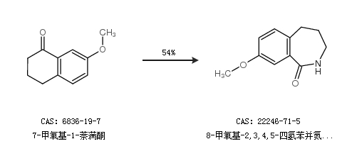 2.通过7-甲氧基-1-萘满酮合成8-甲氧基-2,3,4,5-四氢苯并氮杂卓-1-酮,收率约54%;