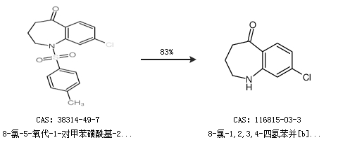 1.通过8-氯-5-氧代-1-对甲苯磺酰基-2,3,4,5-四氢-1H-苯并氮杂卓合成8-氯-1,2,3,4-四氢苯并[b]氮杂卓-5-酮,收率约83%;