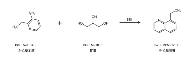 1.通过2-乙基苯胺和甘油合成8-乙基喹啉,收率约85%;