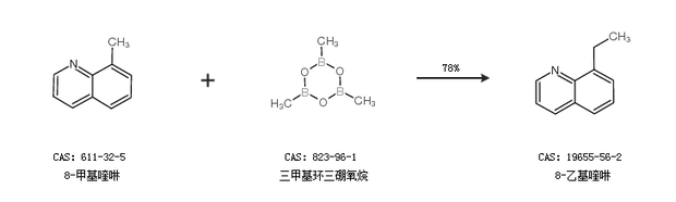 2.通过8-甲基喹啉和三甲基环三硼氧烷合成8-乙基喹啉,收率约78%;
