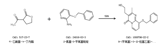 1.通过α-乙酰基-γ-丁内酯和2-氨基-3-苄氧基吡啶合成9-(苄氧基)-3-(2-羟基乙基)-2-甲基-4H-吡啶并[1,2-a]嘧啶-4-酮,收率约59%;