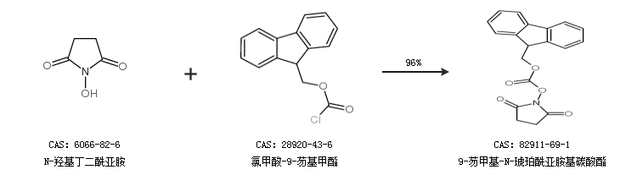中文别名 9-芴甲基-N-琥珀酰亚胺碳酸酯;N-(9-芴甲氧羰基氧基)琥珀酰亚胺;9-芴甲基琥珀酰亚氨基碳酸酯;芴甲氧羰酰琥珀酰亚胺;9-芴甲;N-[(9H-芴-9-基甲氧基)羰氧基]琥珀酰亚胺;
