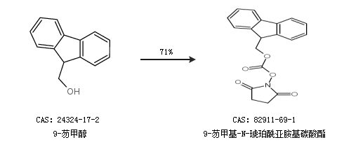 2.通过9-芴甲醇合成9-芴甲基-N-琥珀酰亚胺基碳酸酯,收率约71%;