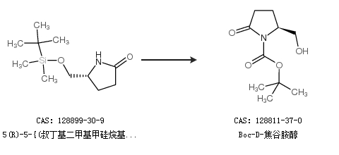 2.通过5(R)-5-{(叔丁基二甲基甲硅烷基氧基)甲基}吡咯烷-2-酮合成Boc-D-焦谷胺醇
