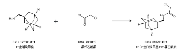 1.通过1-金刚烷甲胺和一氯代乙酰氯合成N-(1-金刚烷甲基)-2-氯乙酰胺