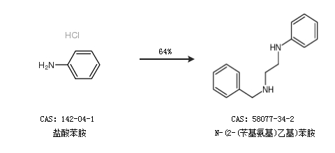 1.通过盐酸苯胺合成N-(2-(苄基氨基)乙基)苯胺,收率约64%;