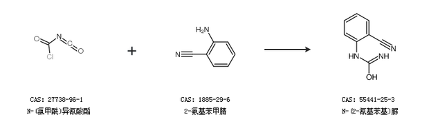 2.通过N-(氯甲酰)异氰酸酯和2-氨基苯甲腈合成N-(2-氰基苯基)脲