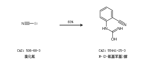 1.通过溴化氰合成N-(2-氰基苯基)脲,收率约83%;