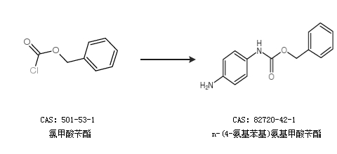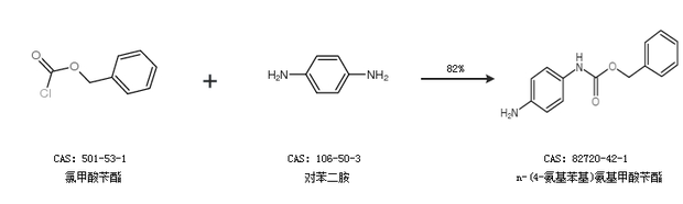 1.通过氯甲酸苄酯和对苯二胺合成n-(4-氨基苯基)氨基甲酸苄酯,收率约82%;