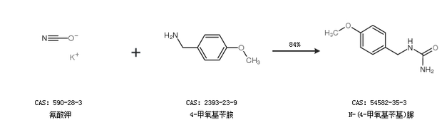 1.通过氰酸钾和4-甲氧基苄胺合成N-(4-甲氧基苄基)脲,收率约84%;