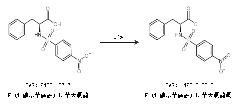 1.通过N-(4-硝基苯磺酰)-L-苯丙氨酸合成N-(4-硝基苯磺酰)-L-苯丙氨酸氯,收率约97%;