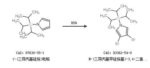 2.通过1-(三异丙基硅烷)吡咯合成N-(三异丙基甲硅烷基)-3,4-二溴吡咯,收率约80%;