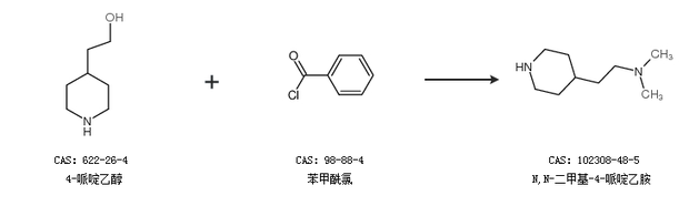 1.通过4-哌啶乙醇和苯甲酰氯合成N,N-二甲基-4-哌啶乙胺