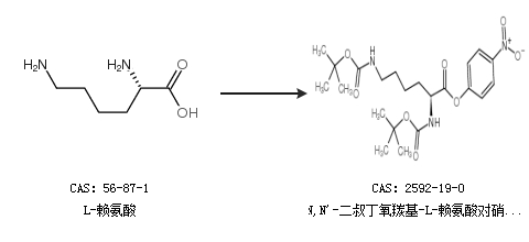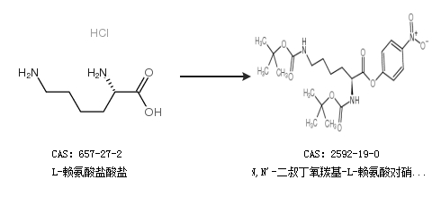1.通过L-赖氨酸盐酸盐合成N,N''-二叔丁氧羰基-L-赖氨酸对硝基苯酚酯