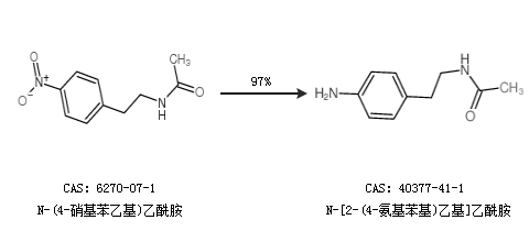 1.通过N-(4-硝基苯乙基)乙酰胺合成N-[2-(4-氨基苯基)乙基]乙酰胺,收率约97%;