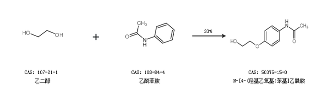 2.通过乙二醇和乙酰苯胺合成N-[4-(羟基乙氧基)苯基]乙酰胺,收率约33%;