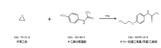 1.通过环氧乙烷和N-乙酰对氨基酚合成N-[4-(羟基乙氧基)苯基]乙酰胺,收率约77%;