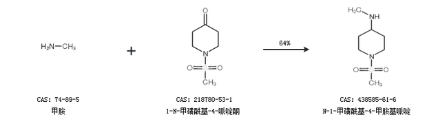 1.通过甲胺和1-N-甲磺酰基-4-哌啶酮合成N-1-甲磺酰基-4-甲胺基哌啶,收率约64%;