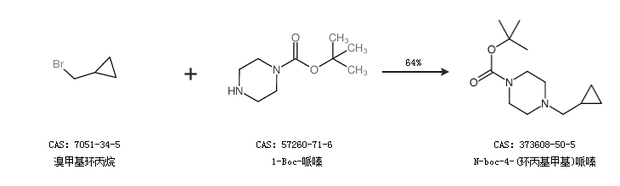 2.通过溴甲基环丙烷和1-Boc-哌嗪合成N-boc-4-(环丙基甲基)哌嗪,收率约64%;