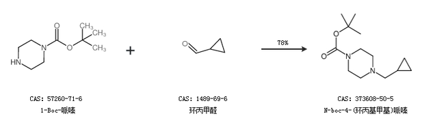 1.通过1-Boc-哌嗪和环丙甲醛合成N-boc-4-(环丙基甲基)哌嗪,收率约78%;