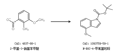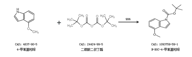 1.通过4-甲氧基吲哚和二碳酸二叔丁酯合成N-BOC-4-甲氧基吲哚,收率约99%;