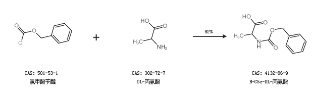 1.通过氯甲酸苄酯和DL-丙氨酸合成N-Cbz-DL-丙氨酸,收率约92%;