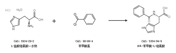 1.通过苯甲酰氯和L-组氨酸合成NΑ-苯甲酰-L-组氨酸