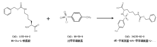 1.通过N6-Cbz-L-赖氨酸和对甲苯磺酰氯合成NΕ-苄氧羰基-NΑ-甲苯磺酰基-L-赖氨酸