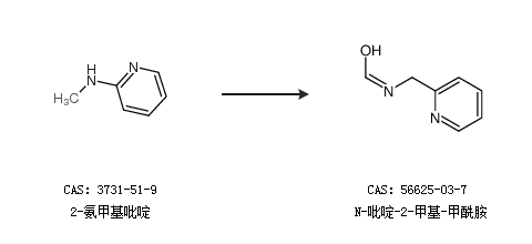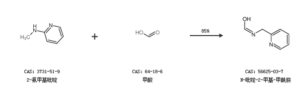 1.通过2-氨甲基吡啶和甲酸合成N-吡啶-2-甲基-甲酰胺,收率约85%;