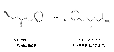 2.通过N-苄氧羰基氨基乙腈合成N-苄氧甲酰甘氨酸硫代酰胺,收率约94%;
