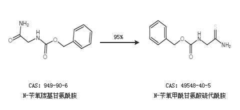 1.通过N-苄氧羰基甘氨酰胺合成N-苄氧甲酰甘氨酸硫代酰胺,收率约95%;