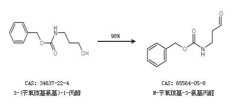 1.通过3-(苄氧羰基氨基)-1-丙醇合成N-苄氧羰基-3-氨基丙醛,收率约98%;