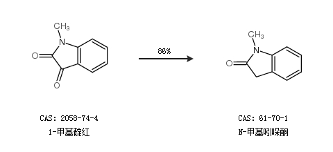 2.通过1-甲基靛红合成N-甲基吲哚酮,收率约86%;