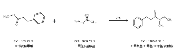 1.通过3-苯丙酸甲酯和二甲羟胺盐酸盐合成N-甲氧基-N-甲基-3-苯基-丙酰胺,收率约97%;