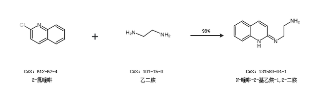 1.通过2-氯喹啉和乙二胺合成N-喹啉-2-基乙烷-1,2-二胺,收率约98%;