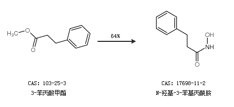 1.通过3-苯丙酸甲酯合成N-羟基-3-苯基丙酰胺,收率约64%;