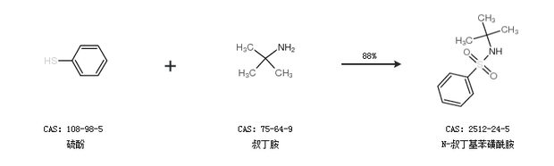 2.通过硫酚和叔丁胺合成N-叔丁基苯磺酰胺,收率约88%;