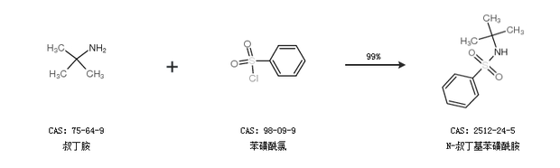 1.通过叔丁胺和苯磺酰氯合成N-叔丁基苯磺酰胺,收率约99%;